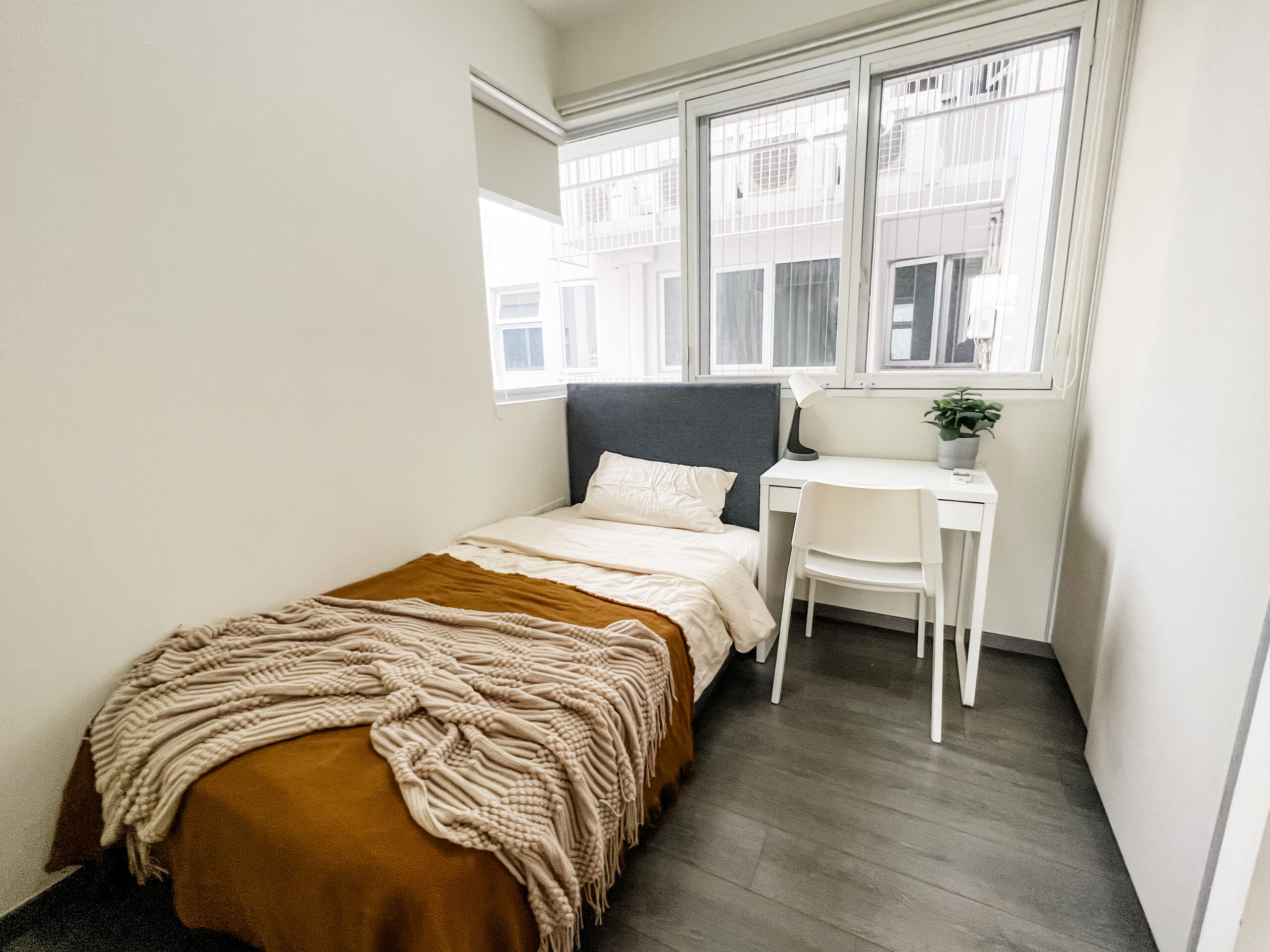 Our rooms come fully-furnished with a mattress, wardrobe, air conditioning, desk and chair, and access to a bathroom (ensuite, private or shared). For added comfort and a hassle-free stay, pillows, bedsheets and blanket are also provided. To learn more about the room or to arrange for a non-obligatory in-person house tour, please get in touch with us.