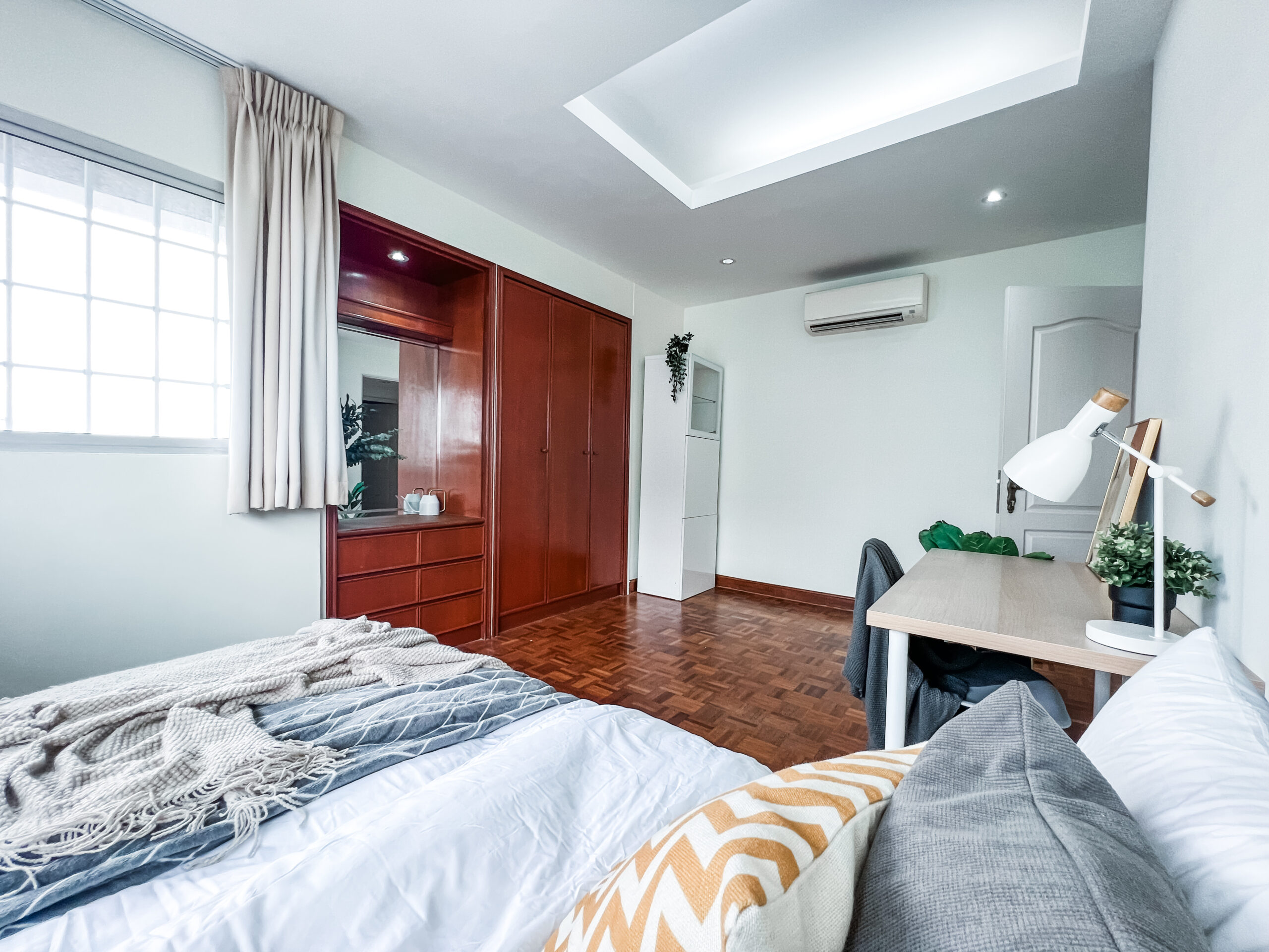 Our rooms come fully-furnished with a mattress, wardrobe, air conditioning, desk and chair, and access to a bathroom (ensuite, private or shared). For added comfort and a hassle-free stay, pillows, bedsheets and blanket are also provided. To learn more about the room or to arrange for a non-obligatory in-person house tour, please get in touch with us.